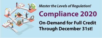 Compliance professionals did you miss Compliance 2020? No, you didn't! You can still master the levels of regulation and get the updates you need to face today's regulatory challenges. Attend Compliance 2020 virtually and on-demand, at your convenience! All sessions are available for full credit through December 31st!
