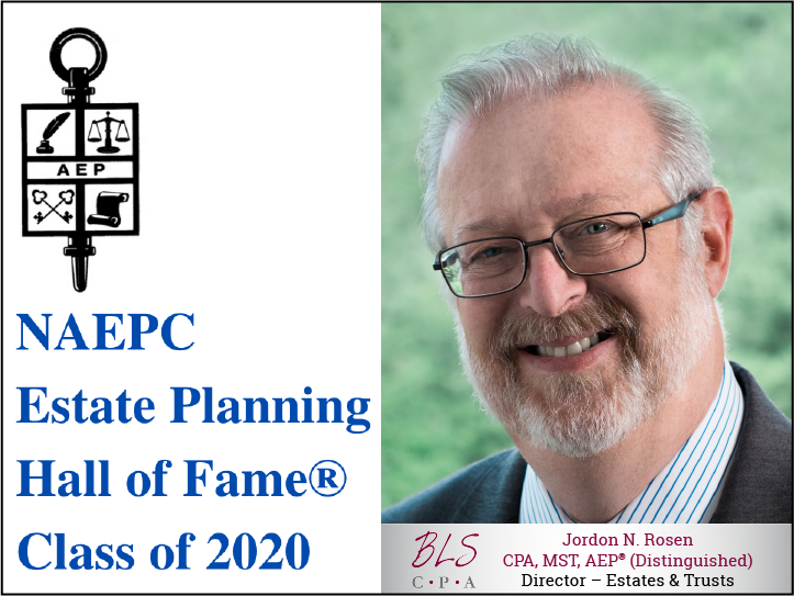 Jordon N. Rosen, CPA, AEP®, Elected into the NAEPC Estate Planning Hall of Fame® and Honored as an Accredited Estate Planner® (Distinguished) Designee by the National Association of Estate Planners & Councils