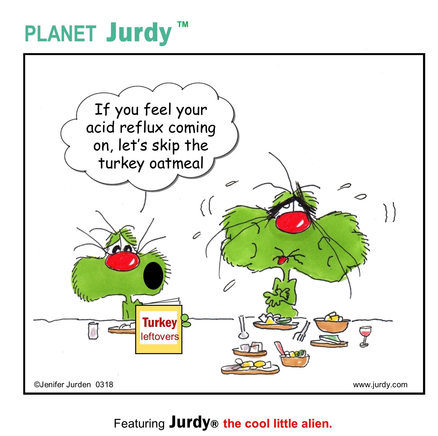 Jenifer Jurden is a Cartoonist from Wilmington who has graciously provided her Planet Jurdy cartoons for the DBA Digest. Jurdy® is her other-worldly "Hero of Happyness" whose cartoons bring levity to humans worldwide.