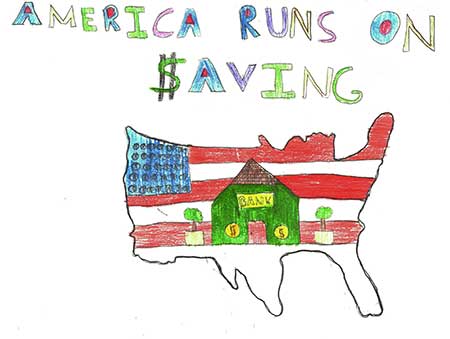 Each year students are invited to participate in a poster contest to illustrate the importance of saving. This year's first place winner was Joe J. a student at St. Mary Magdalen Elementary School in Wilmington. Joe's poster, "America Runs on Saving" is seen above. Joe received $100 for his winning entry. Two second place winners received $50 each. Nine entrants received honorable mention and were given copies of this year's book: "The Great Investo and Muscles O'Money." Congratulations to all the contestants and thank you!
