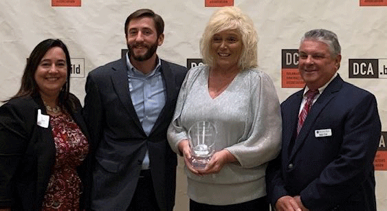 Artisans’ Bank Downtown Branch Manager Mary Sheldon was the recipient of the ‘Richard P. DiSabatino, Sr. Award’ at the 50th annual DCA Construction Excellence Award dinner on Thursday, October 24th, 2019. As the recipient of this award, she was acknowledged for her commitment to the community with her tireless efforts to always lend a hand to the DCA organization. Adam DiSabatino proudly presented the award named after his late grandfather. Artisans’ Bank commercial lenders Nicole Monroe-Cole and Bob Cox joined in the celebration and acknowledgment of their teammate.