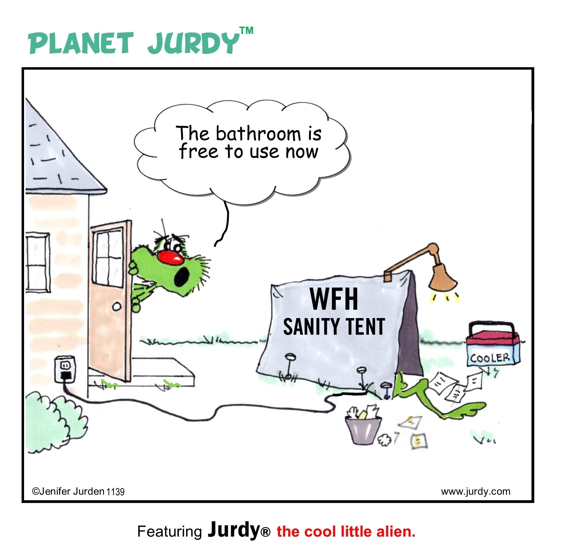 Jenifer Jurden is a Cartoonist from Wilmington who has graciously provided her Planet Jurdy cartoons for the DBA Digest. Jurdy® is her other-worldly "Hero of Happyness" whose cartoons bring levity to humans worldwide.
